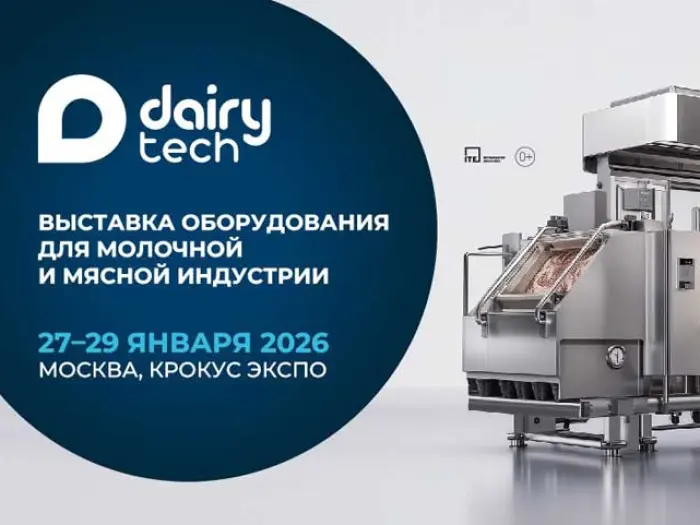 DairyTech – международная отраслевая выставка, на которой представлены ключевые решения для молочной, мясоперерабатывающей и пищевой промышленностей – от оборудования и технологий до ингредиентов и упаковочных решений. 27−29 января 2026, Москва, МВЦ «Крокус Экспо», Павильон 1, Зал 4