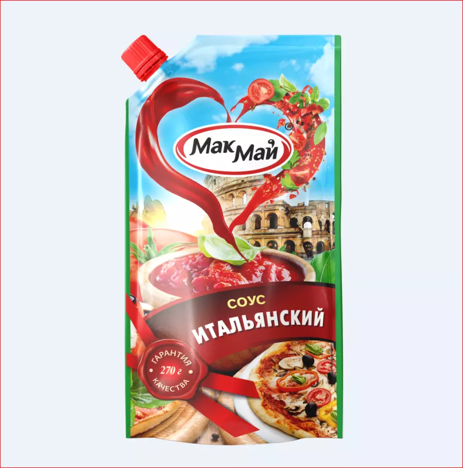 Соус «Итальянский» приготовлен на основе сочных томатов с добавлением пряного трио: кориандра, кардамона и куркумы, привнесет в любое блюдо нотку традиционного итальянского колорита. Яркий вкус соуса станет незаменимым дополнением к спагетти и другим видам пасты, а также к пицце, лазанье и блюдам из риса с овощами. Массовая доля растворимых сухих веществ – 18%.