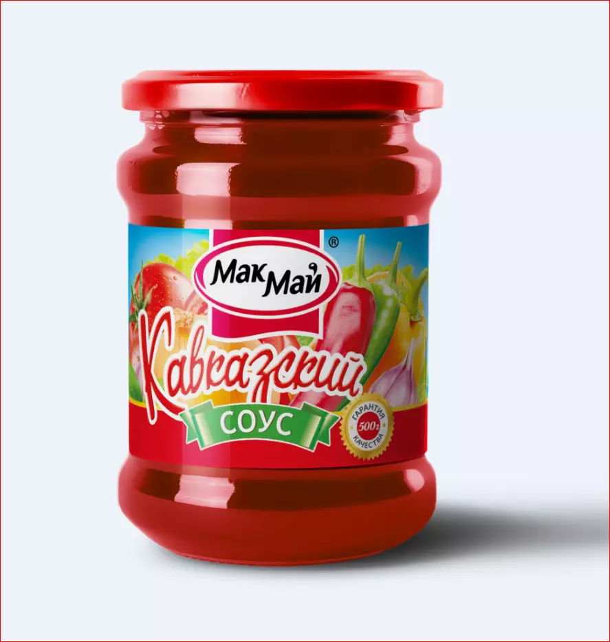 Соус «Кавказский» ТМ «МакМай» приготовлен в лучших традициях кавказской кухни, уникальной особенностью этого соуса является ароматное соединение трех видов перца и специй. Массовая доля растворимых сухих веществ – 18%.