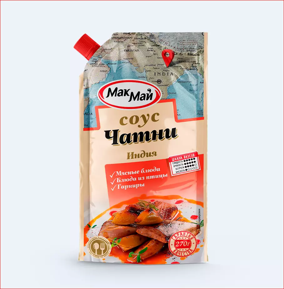 Манговый чатни — это густой индийский соус, универсальная приправа. Он обладает богатейшими сложными вкусами и головокружительными ароматами. Традиционная версия соуса чатни максимально приближена к оригинальному рецепту, появившемуся когда-то в Индии, обладает сбалансированным вкусом с привычными для многих нотками. Она - в меру пряная, с классическим сочетанием сладости и солености, со средней консистенцией. Массовая доля растворимых сухих веществ – 18%.