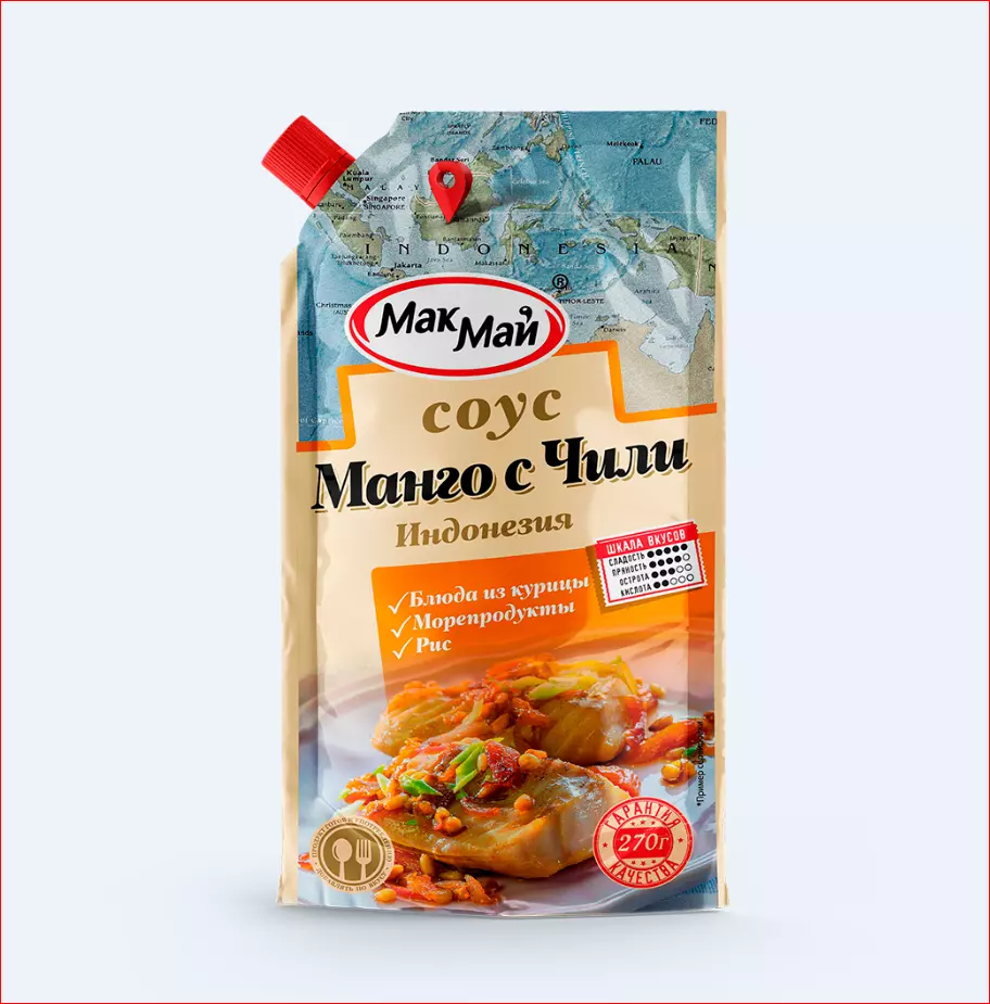 Соус манго с чили является жемчужиной азиатской кухни (Тайланд, Индонезия), гармонично сочетая в себе удачно дополняющие друг друга компоненты. Острый соус с манго — это буйство вкусов. Острый перец, сладкий манго, кислый лайм, пряный имбирь и свежая мята, - все это ощущается одновременно. Если вы являетесь поклонником азиатской кухни, то этот соус обязательно придется вам по вкусу! Массовая доля растворимых сухих веществ – 18%.